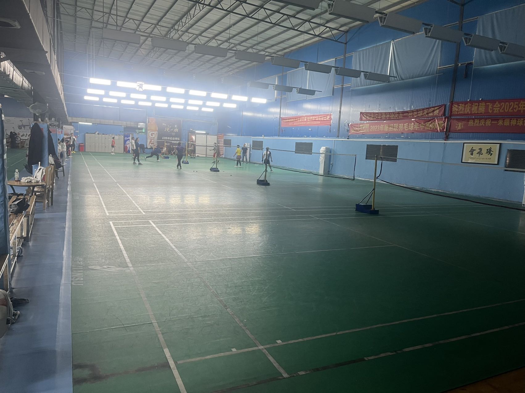 没有空调,只有旁边有风扇,环境真的不好!场地很小!而且这里的人不知道为什么很喜欢占别人场打,我们因为太闷了,歇一下,马上就不知道哪里来的人去打了,就挺无语的,
