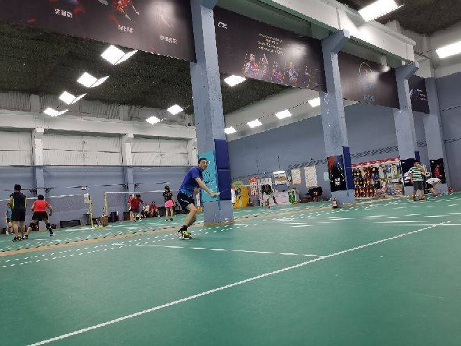 场地宽敞 ,龙骨地板,前台热情,车位充足 ,场馆交通便利,就在地铁站附近,停车前半小时免费,5元/小时,车位充足,双层龙骨木地板减震一流,赛事级灯光柔亮无影,层高8米场地间距都很ok,打球选它准没错。租拍10元/次,空调每片+收5元/时,设置都很完善,唯一缺点是没有淋浴。