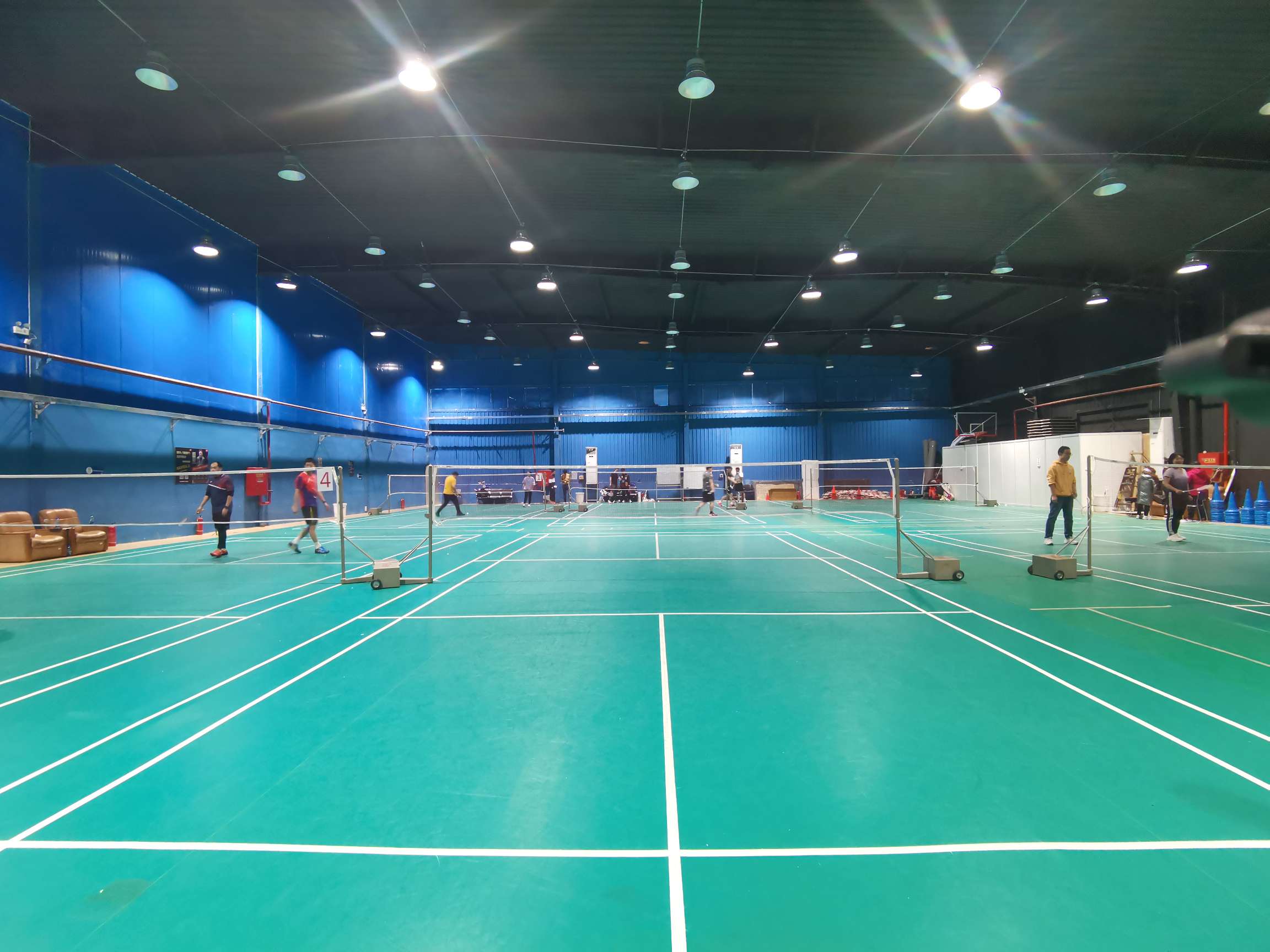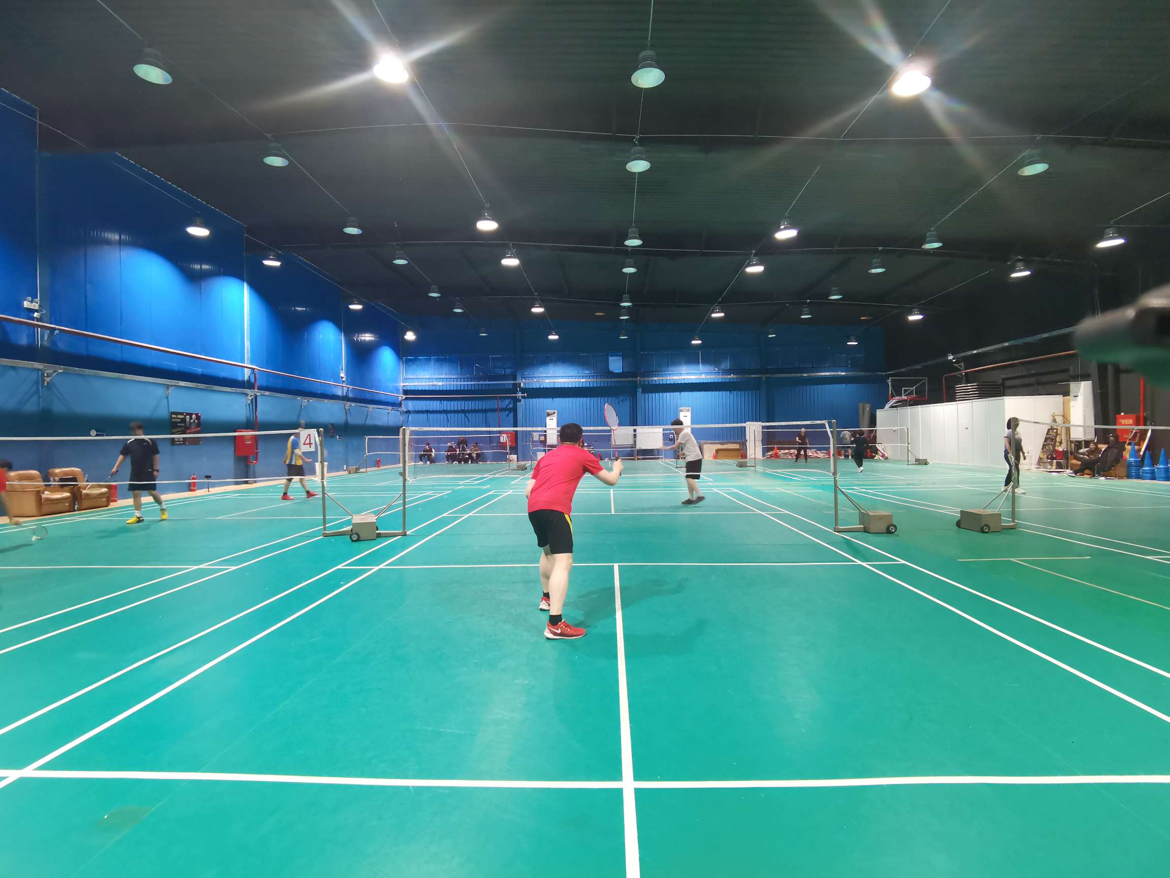 人相对较少,位置还行,光线不错。二个场地之间的距离够大。缺点是木板龙骨有点硬。顶篷有点矮。